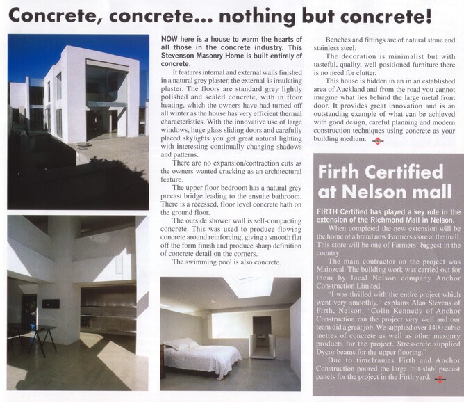 The home was featured in industry publication Golden Bay Cement News September 2002