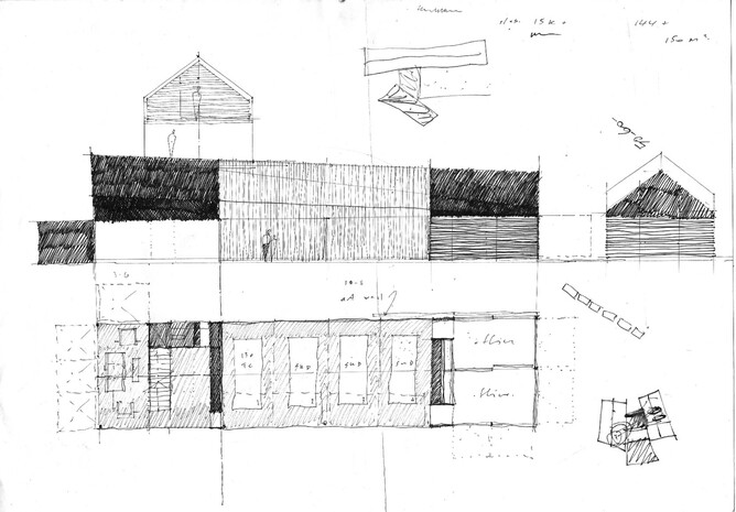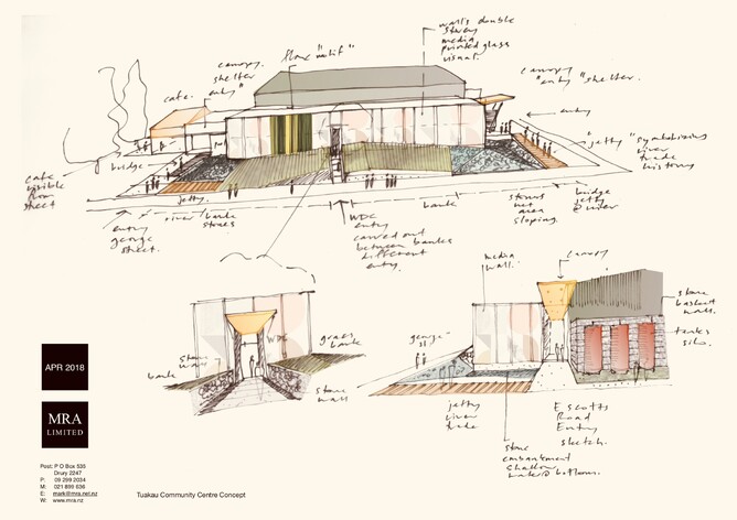 We were approached by a client about his community's ideas for a new recreation and administration centre in North Waikato. This sketch was our interpretation of a complex that would provide a contemporary and flexible hub for local activity. The concept reflected the area's history & development as a busy portage that had served pioneer farming and flax growing agriculture activities.